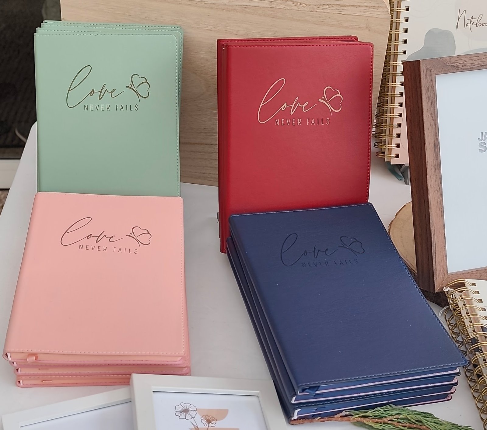 * Découvrez les nouveaux carnets souples « tout doux » Love never fails pour écrire vos notes bibliques, etc.