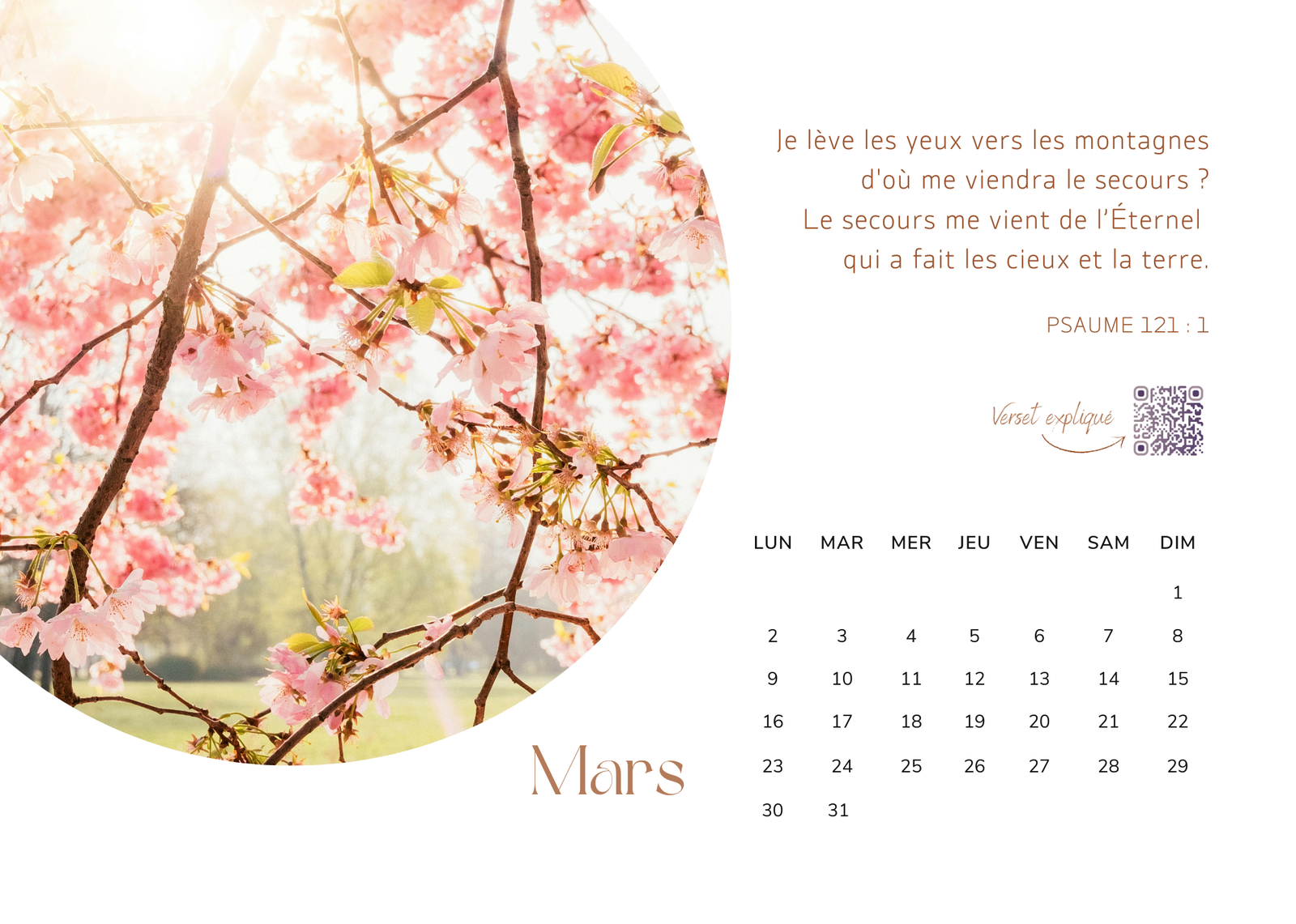 Mois après mois, découvrez un verset de la Bible accompagné d’une pensée simple et pratique.