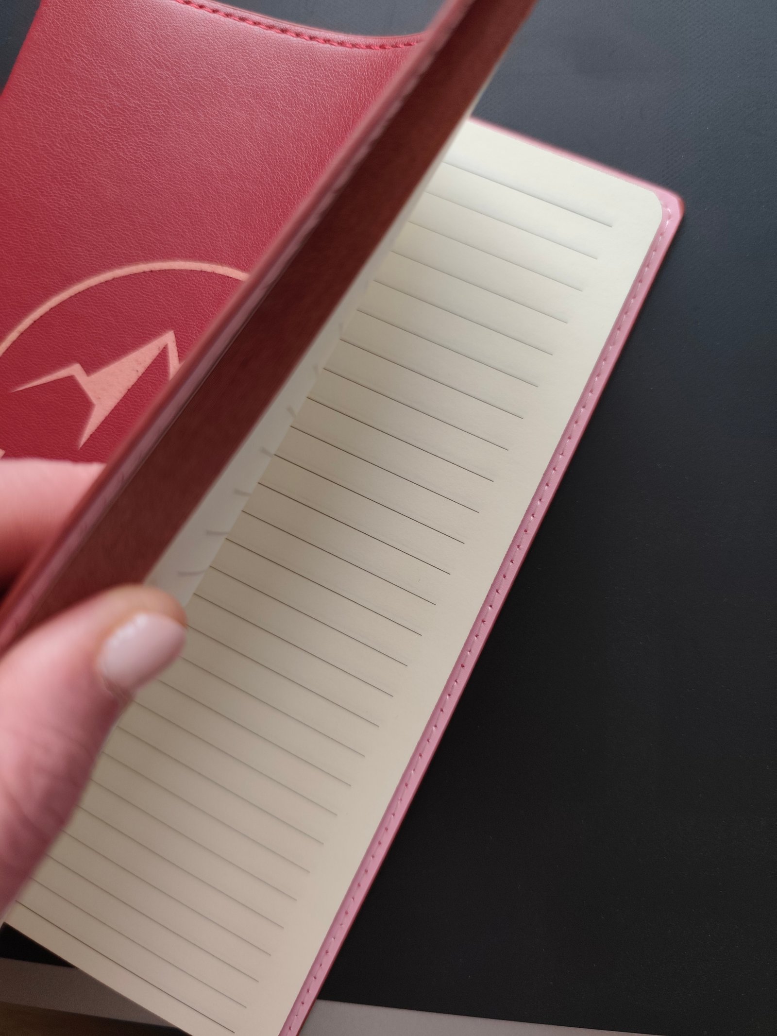 Ce carnet est très agréable au toucher doux, il est en simili cuir et souple.